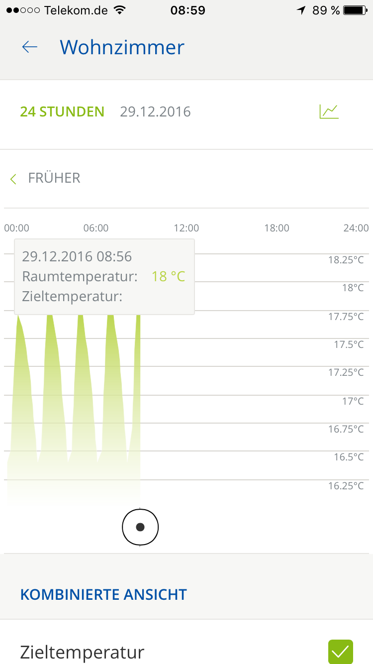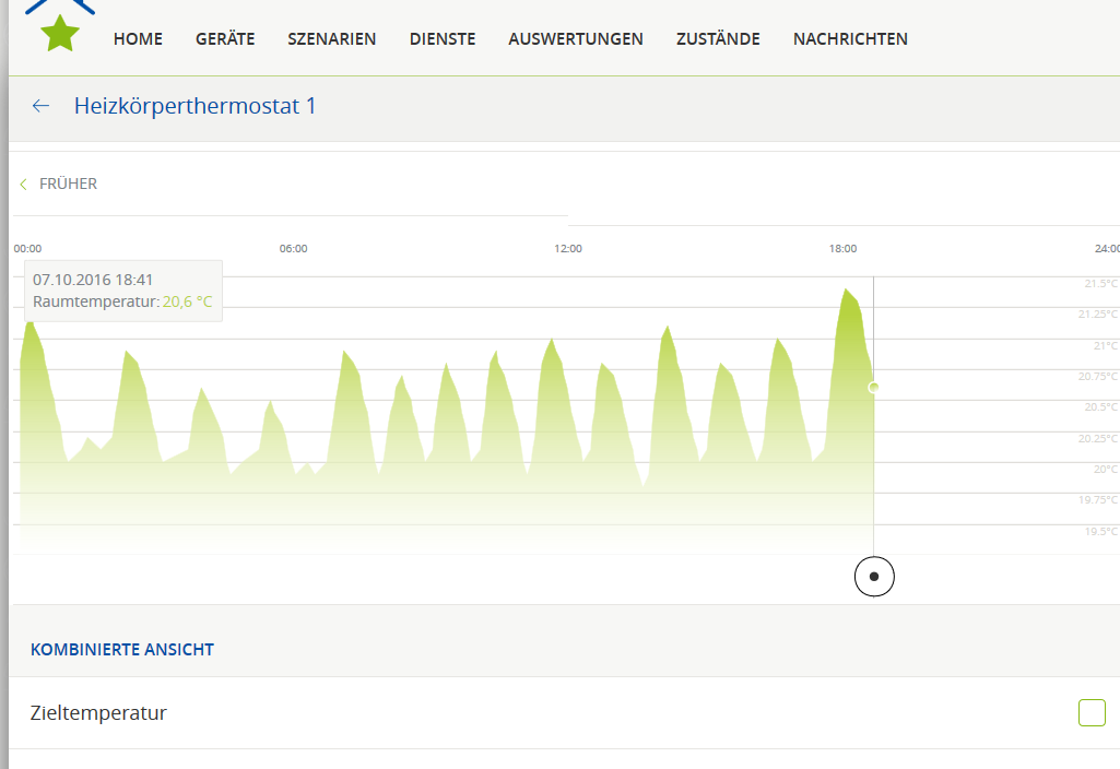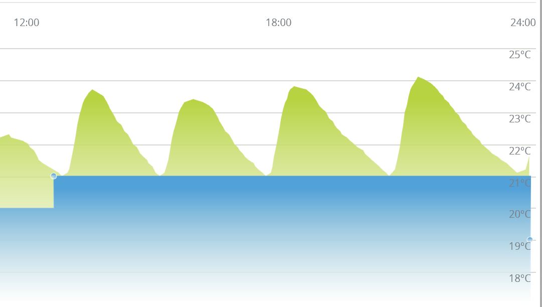 Bei mir habe ich auch hohe Termperaturschwankungen von ca. 3 Grad über der Solltemperatur (hier 21 Grad). Siehe anhängendes Bild.
