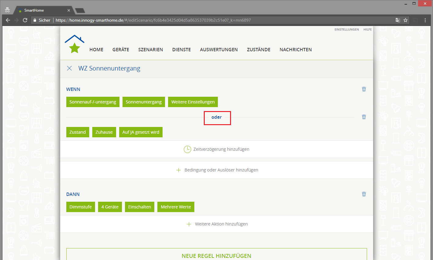 Wie kann man eigentlich eine Regel mit mehreren Bedingungen Und-Verknüpfen? Meine App trägt immer oder ein, das kann ich aber nicht ändern (zumindest habe ich die Möglichkeit dazu nicht gefunden).