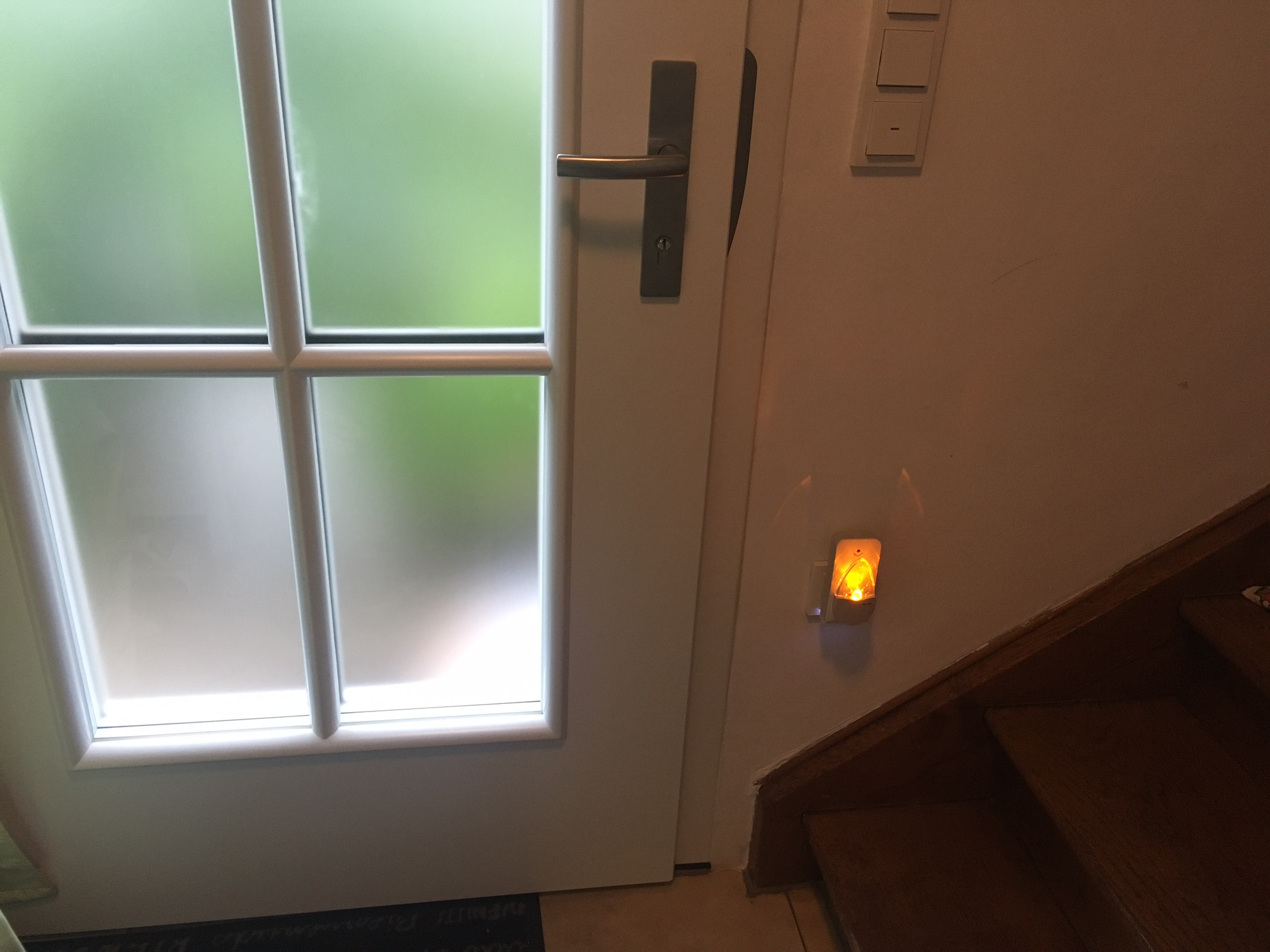Ich habe daher alle relevanten Fenster/Tür Sensoren verknüpft (in meinem Fall 8 Sensoren) , mit einem innogy Zwischenstecker, in dem ein spezielles Hama Nachtlicht OHNE Lichtsensor steckt, das zudem extrem flach ist. Kostenpunkt etwa 8 EUR. Erhältlich z.B. hier: http://www.amazon.de/dp/B007C3B8ZO?tag=m018e-21