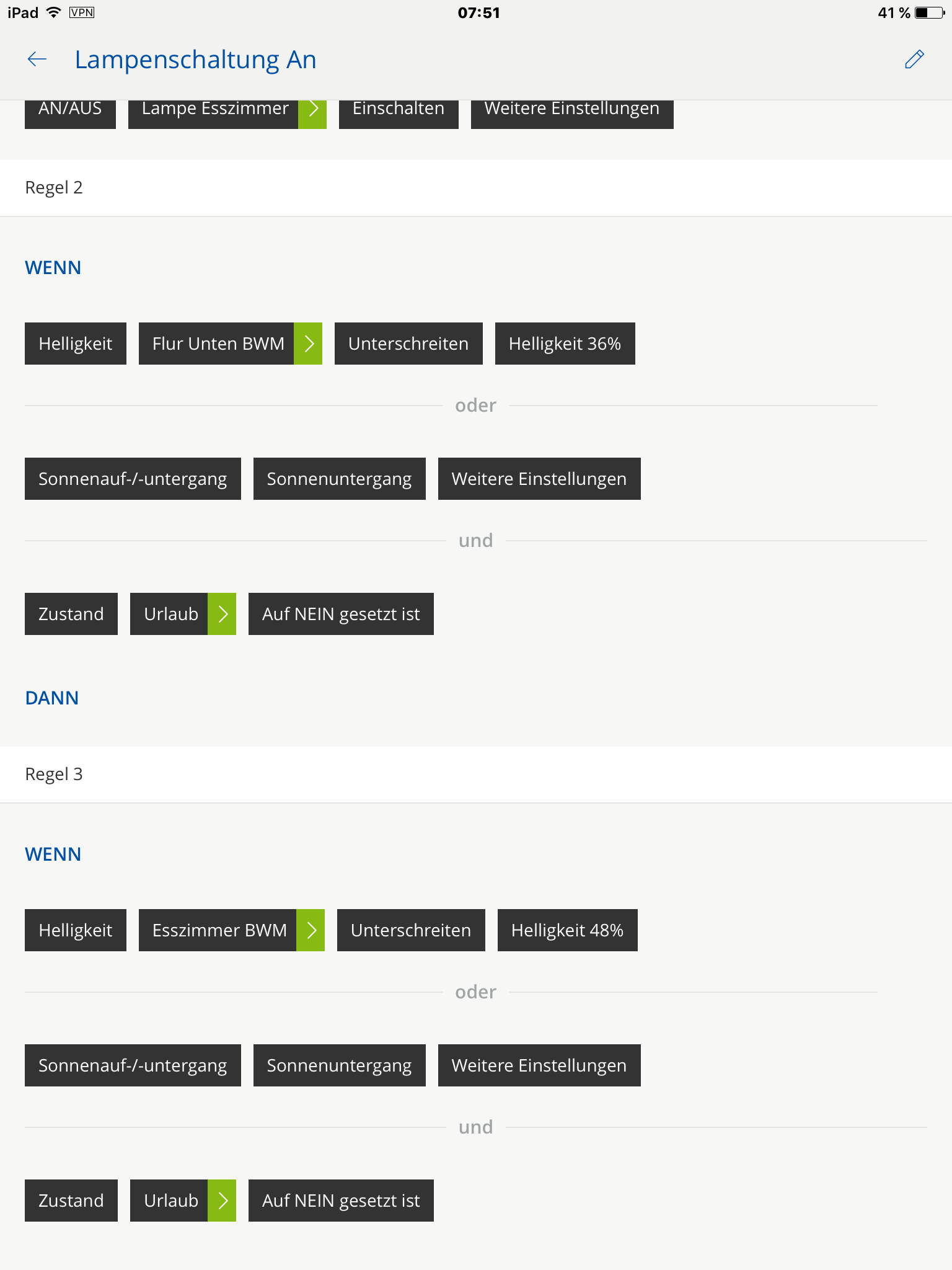 Hier gut an Regel 2 zu sehen. Oben iPad, unten iPhone. Beim iPad fehlt "anscheinend" die ganze "Dann" Regel.