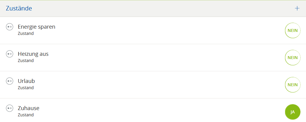 Zunächst mal gibt es die zwei Zustände "Energie sparen" und "Zuhause":