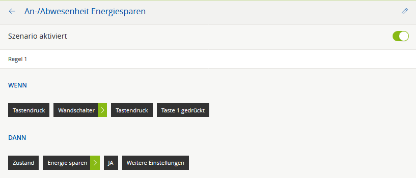 Dann gibt es das folgende Szenario "An-/Abwesenheit Energiesparen":