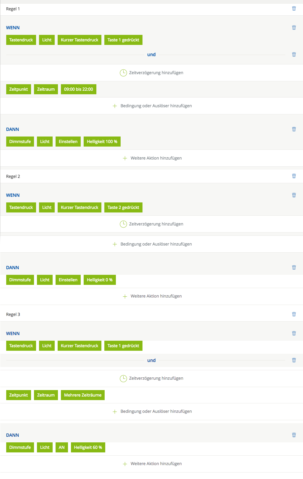 Bei Regel 3 heit es hingegen: Dimmstufe > Licht > AN > 60%