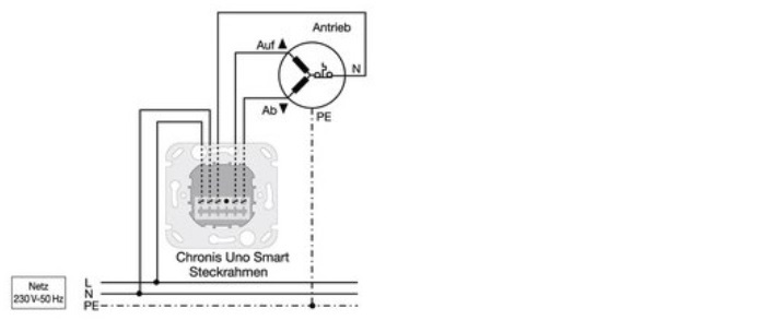 ich habe mehrere Somfy Chronis Uno smart Jalousiensteuerungen verbaut (Verbindung zum Moter per Kabel, NICHT die Funkmodule). Der Anschluss sollte gemäß dem beigefügten Schaltbild erfolgt sein (hat mein Elektriker vorgenommen).