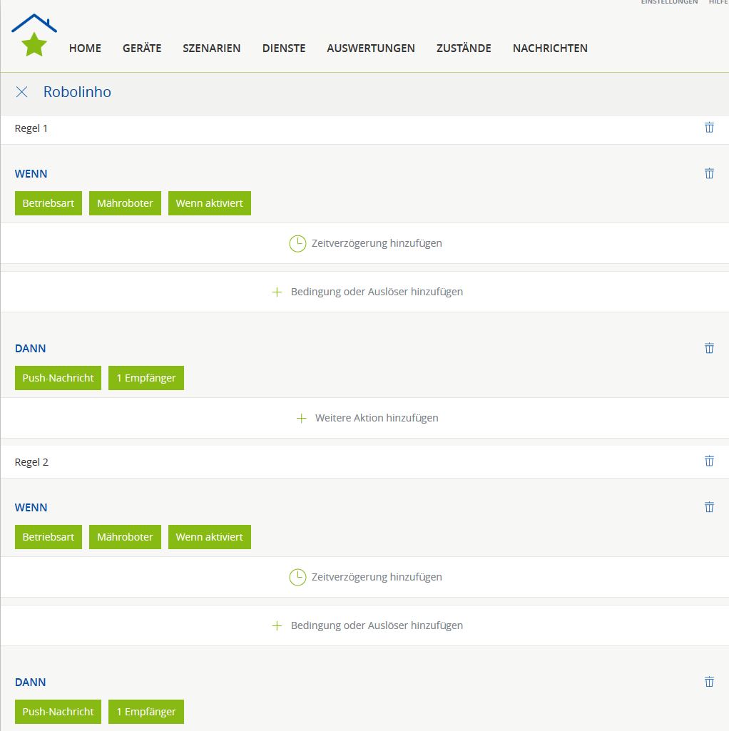 Gern würde ich ein Szenario erstellen, welches mit per Push darauf aufmerksam macht, dass der Robolinho sich im Garten festgefahren hat, bzw eine Fehlermeldung ausgegeben hat. Das ist aber wohl nicht möglich... Auch nicht über die in der Auswertung hinterlegten Informationen... Oder hat jemand eine Idee wie das funktionieren kann? Auch würde ich mir wünschen, den Robo mittels Alexa zu starten oder nach Hause zu schicken. Aber das scheint auch nicht zu funktionieren.