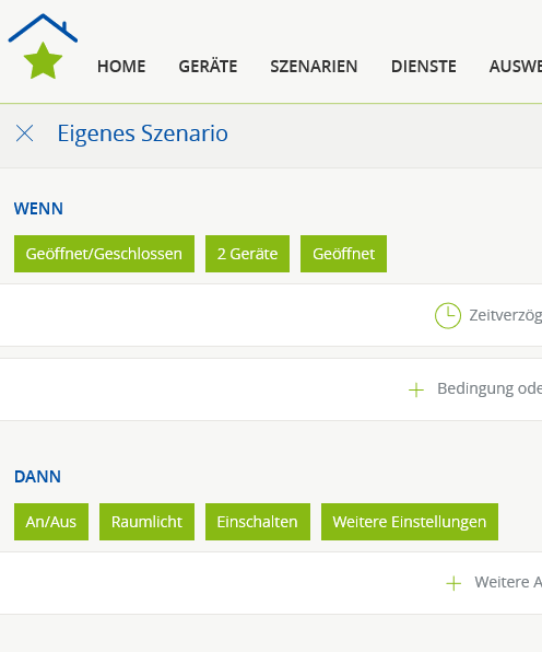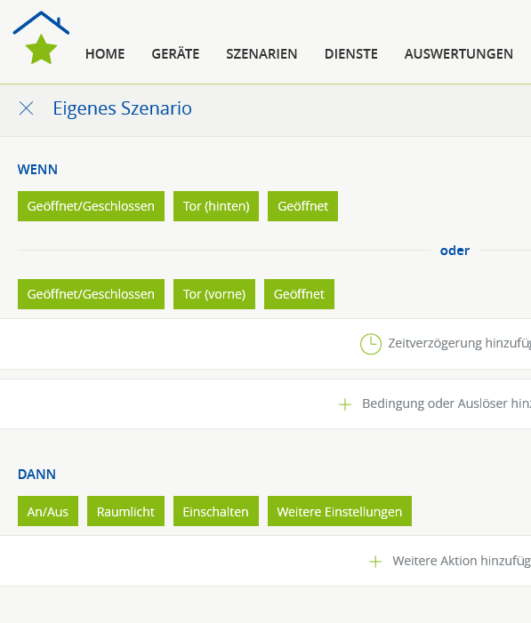 Die gleiche Frage stellt sich übrigens auch bei der Aktion. Auch dort könnte ich gesammelt 3 Lichter einschalten oder jedes einzeln mit "und" angeben.