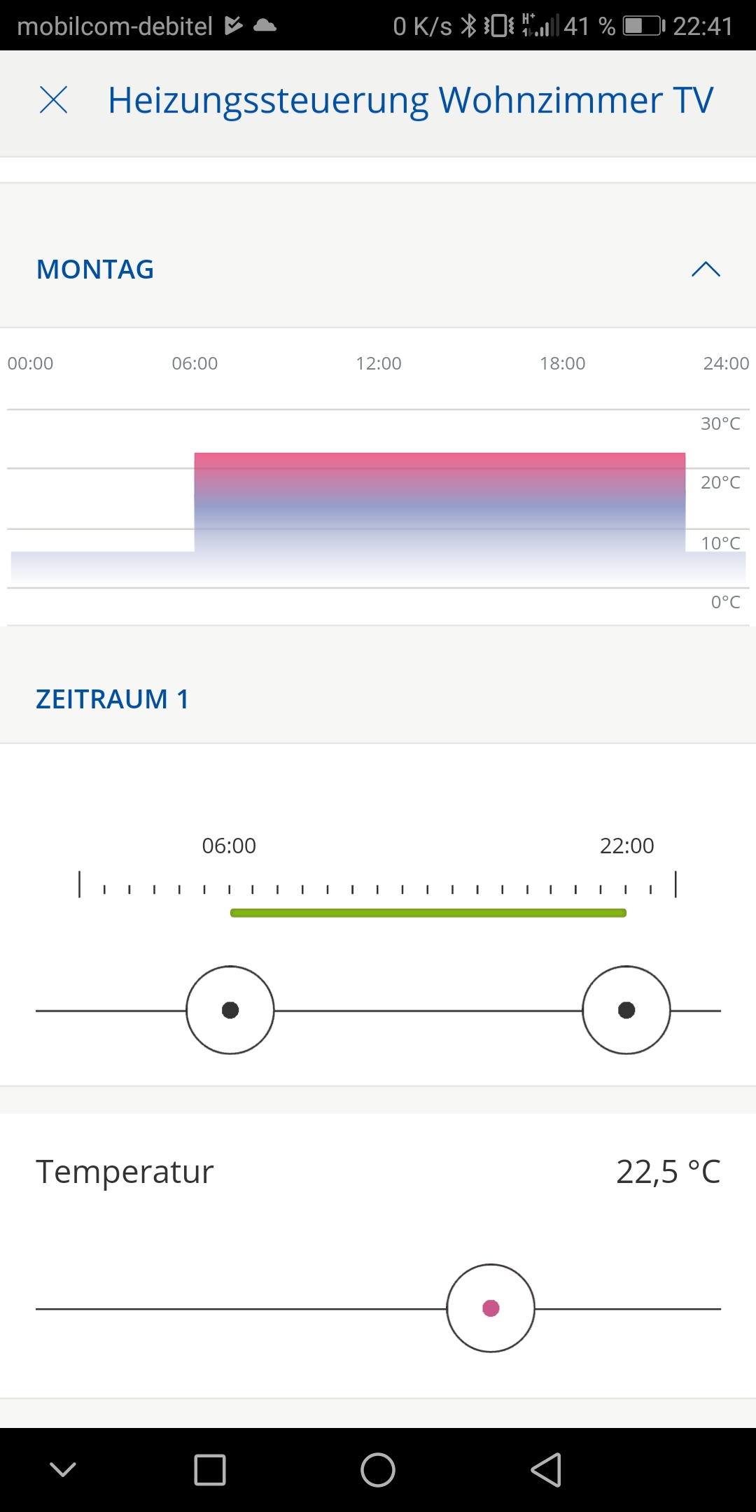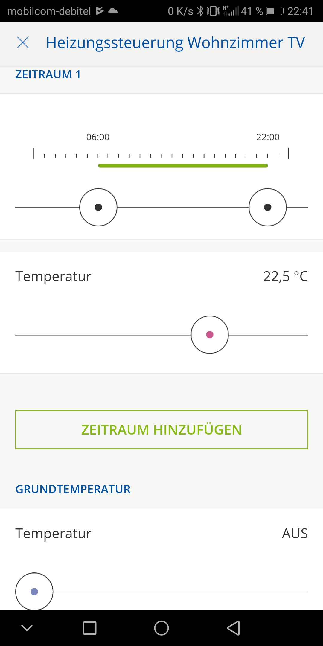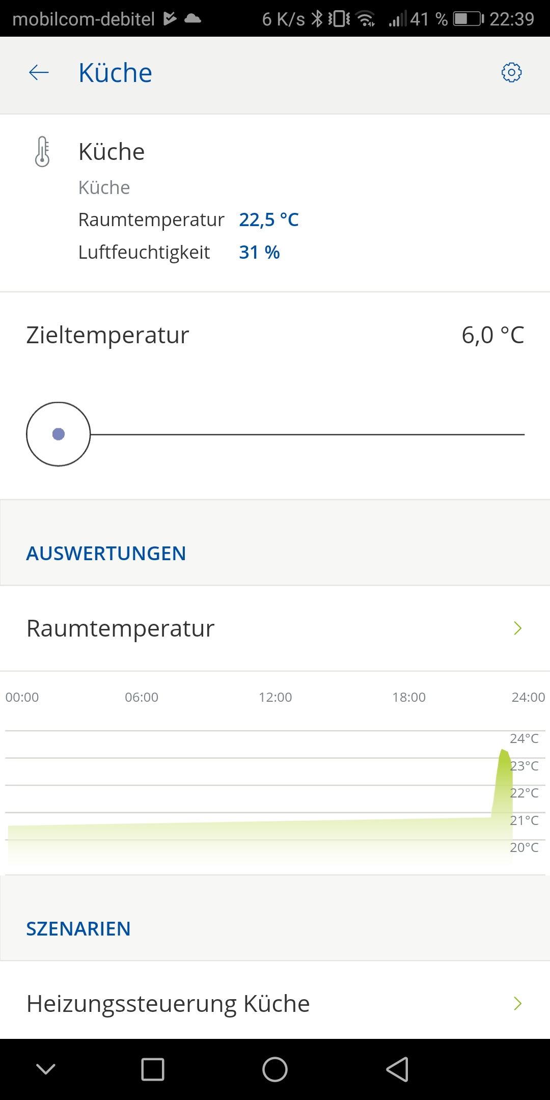 Ich habe das Problem das ich nicht die App verstehe. Ich baue ein Szenario mit der Uhrzeit 6 bis 22 Uhr mit der Angabe "Temperatur 22Grad und Grundtemperatur auf 0". Dann wird mir ein schönes Bild angezeigt dass die Heizung in dieser Uhrzeit an ist und über Nacht ebend Aus. Ist ja auch logisch. Wenn ich einen einzelnen HKT anklicke steht dort das Wort "Zieltemperatur" Beispielsweise auf 21 Grad!!! Ist mein Szenario dann nutzlos weil ich nach 22Uht noch 21Grad auf dem Thermometer stehen habe. Ich verstehe den Sinn überhaupt nicht. Vielleicht kann mich einer mal aufklären und mir ein Beispiel schreiben. Habe ein paar Bilder unten angefügt
