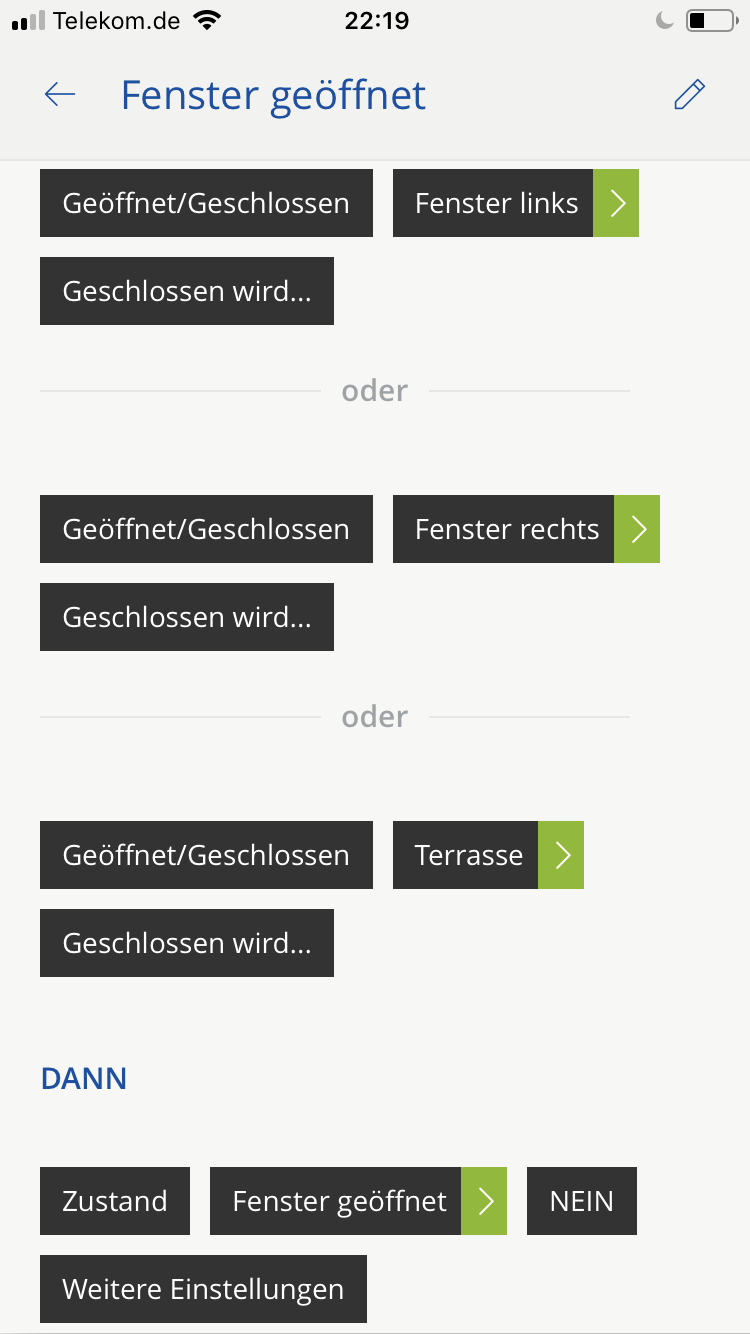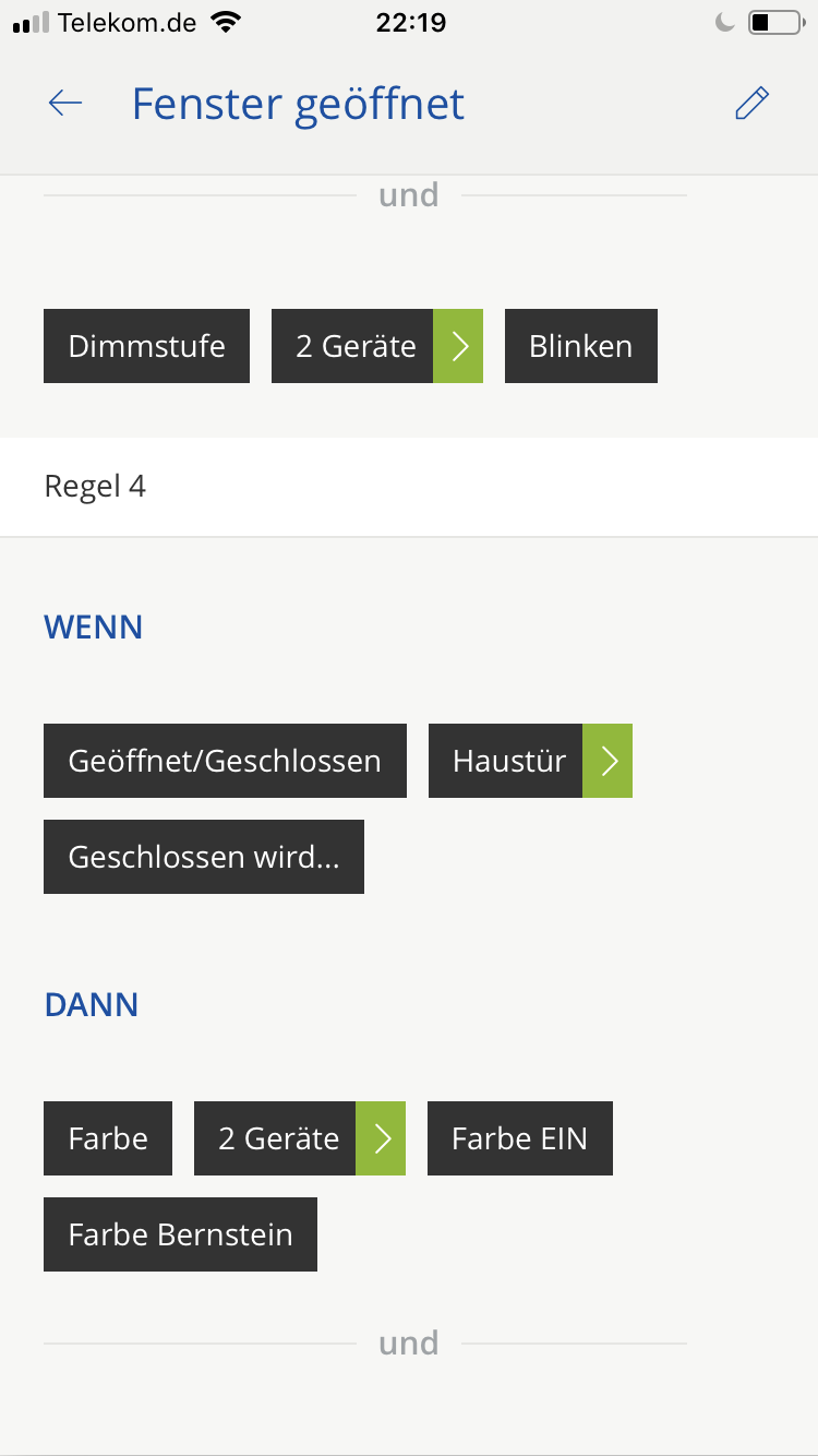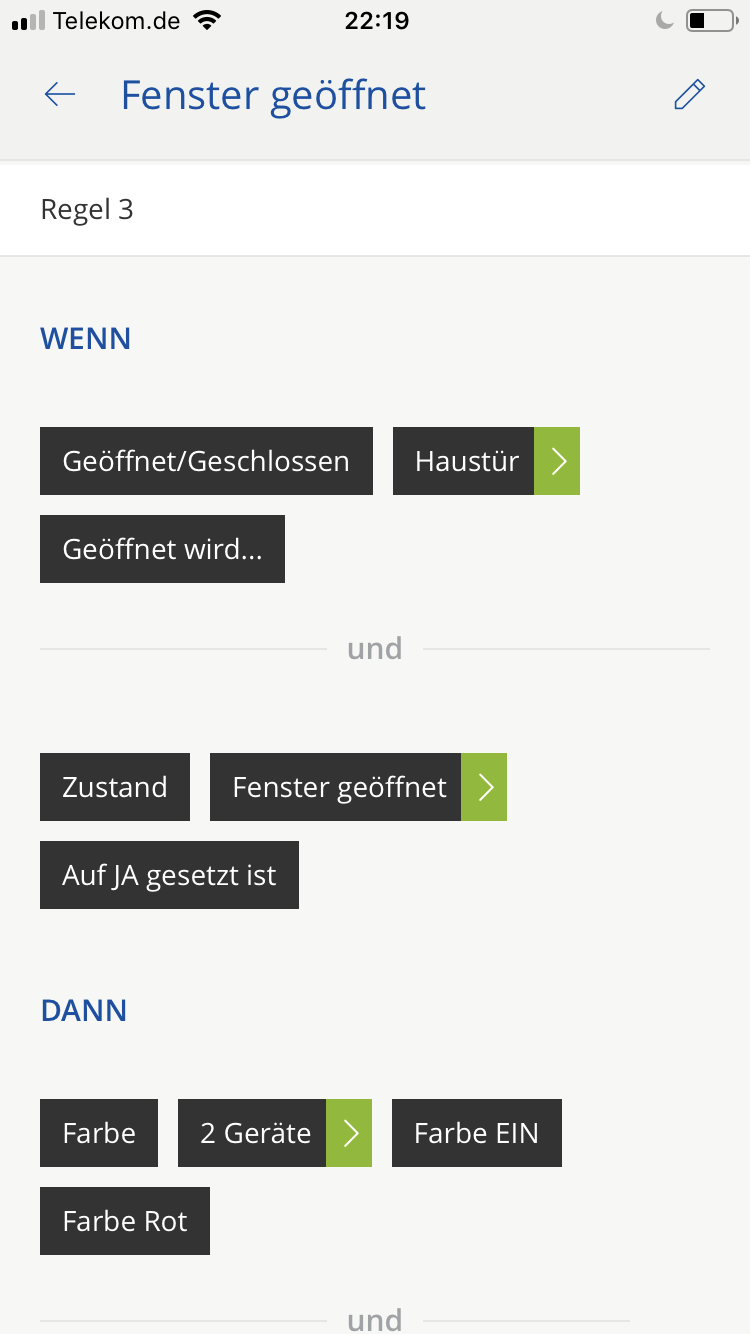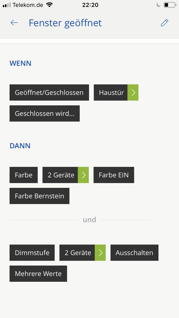 Zur Zeit versuche ich ein Szenario zu erstellen das mir über eine Phillips Hue Birne anzeigt ob beim öffnen der Haustür ein Fenster geöffnet ist.