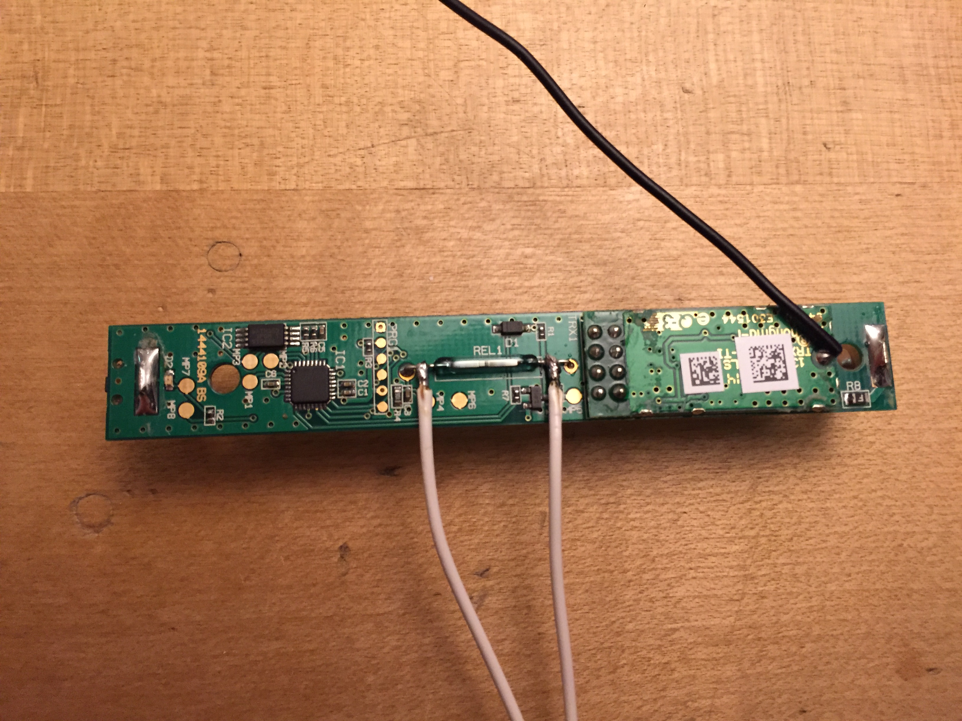 An jedes Beinchen des Reed-Kontakts eine dünne Kupferlitze anlöten. Alternativ kann der Reed-Kontakt auch mit einem Seitenschneider entfernt und die Litze an die Beinchen angelötet werden - dann ist allerdings kein einfacher Rückbau mehr möglich.