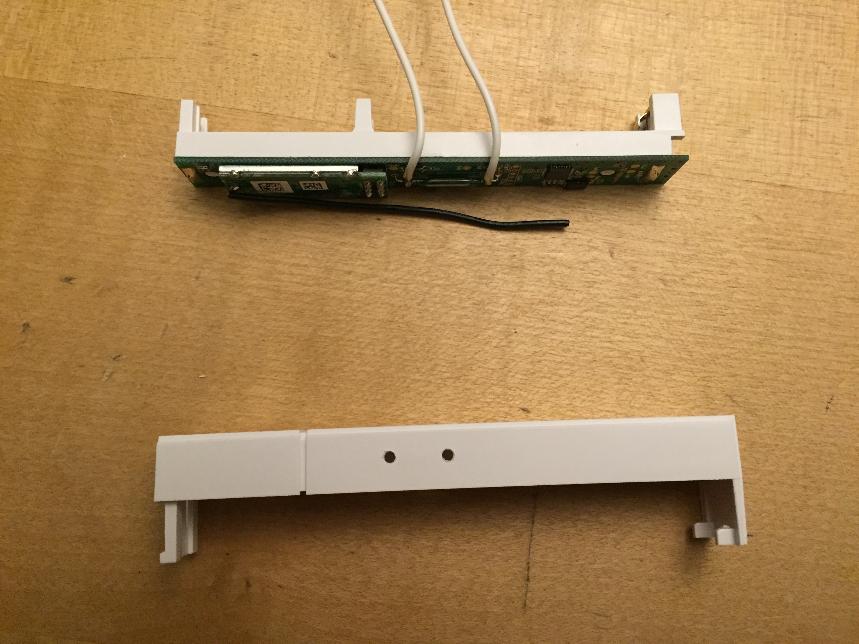 Die Platine wieder mit dem Batterieträger zusammenstecken und ins Gehäuse an entsprechender Stelle zwei Löcher als Kabelausführungen bohren. Wenn man Zwillingslitze verwendet reicht auch ein Loch.