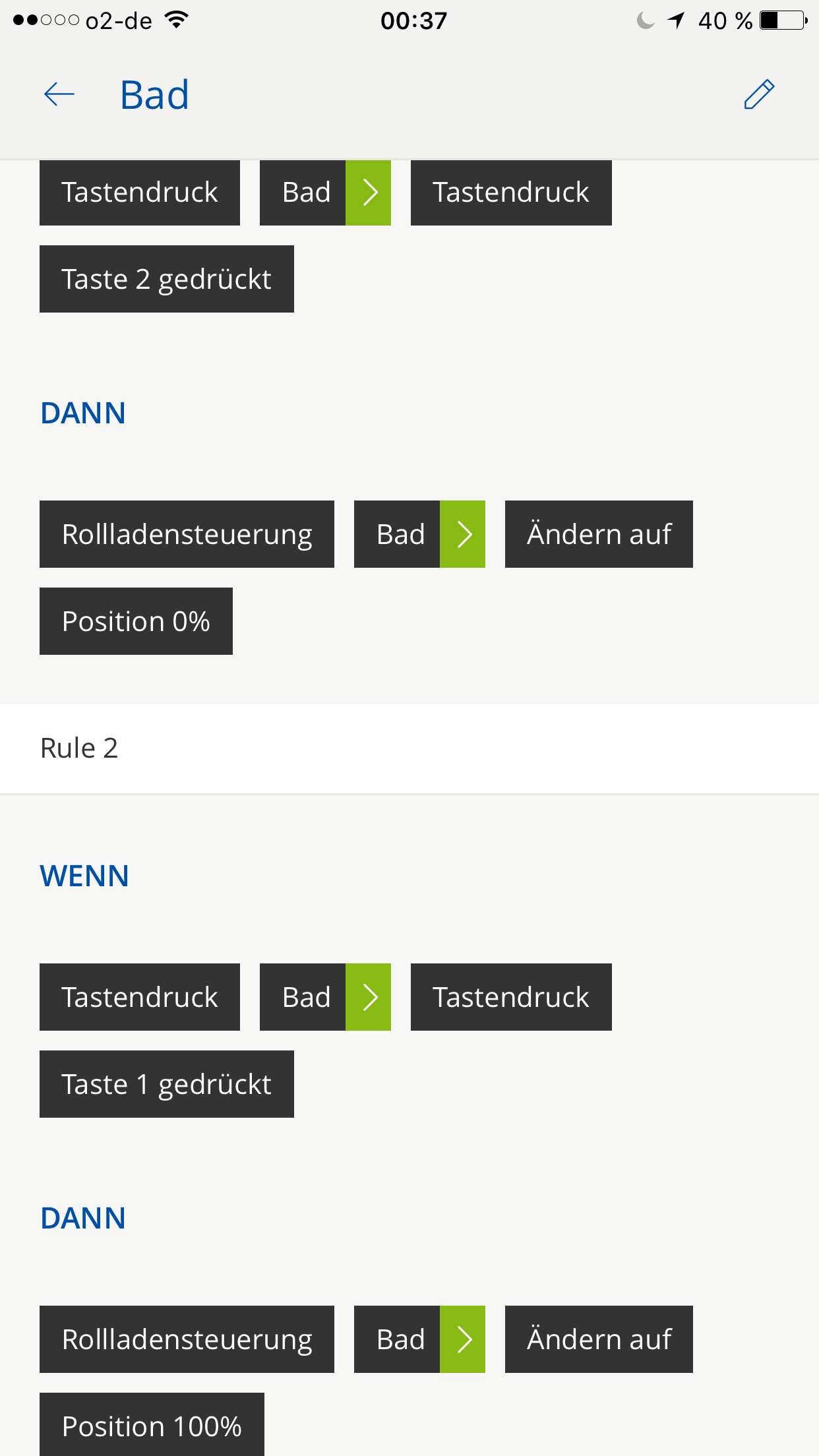 Habe das Szenario jetzt anders eingestellt. Leider konnte ich trotzdem keine Änderung feststellen. Der Rollladen fährt nur so lange, wie man den Schalter gedrückt hält.Hi justinkuhn, anscheinend wurde das Standard Szenario gelöscht bzw. geändert. ...