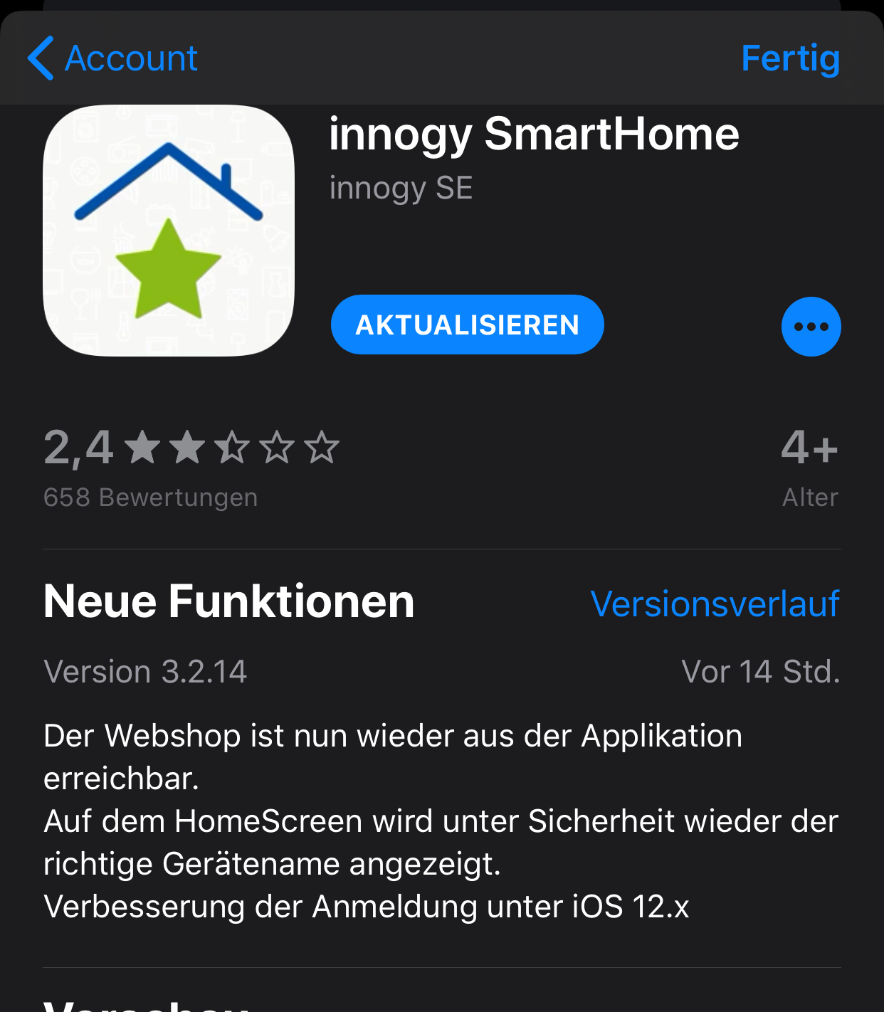Mir rätselhaft, wie man ein Update so freigeben kann.....dann muss man WENIGSTENS dazuschreiben, dass nur eine Neuinstallation der App zum Erfolg führt.Ok. Selbstversuch. App Update - Bug bleibt. App beenden und neustarten - Bug ble...