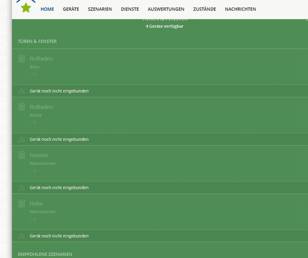 Ohne etwas verändert zu haben, hat bis gestern Nachmittag alles einwandfrei funktioniert. Als ich dann einen Rolladen per App herunterfahren wollte, habe ich gesehen, dass die Geräte als nicht eingebunden angezeigt werden und sich dadurch natürlich auch nicht bedienen lassen.