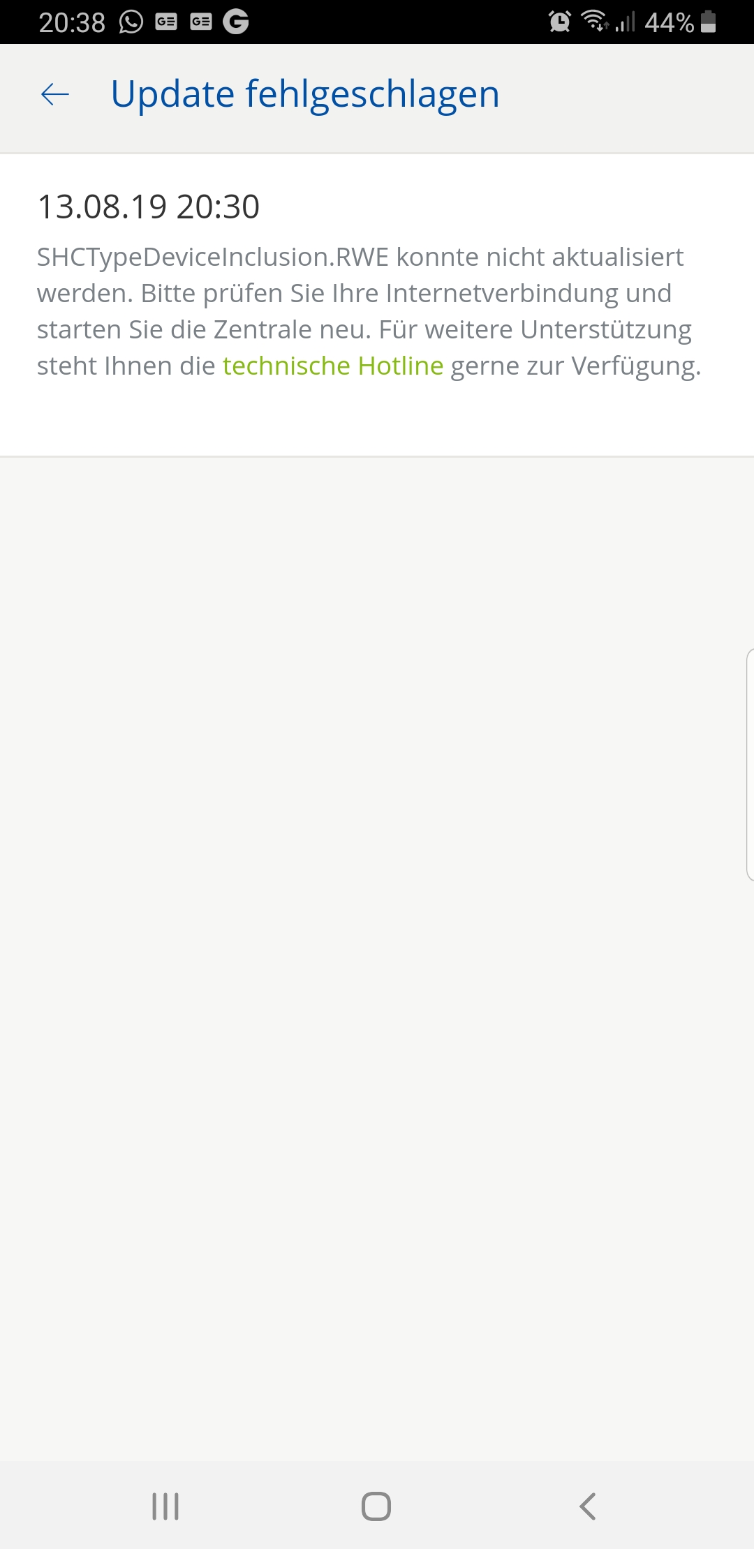 Dann kommt der Fehler vielleicht daher, dass diese Software für die Alte Zentrale verwendet wurde, die neue aber diese nicht benötigt. Villeicht weiß THellweg mehr?