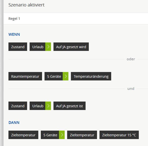 Moin, Habe gestern für mein Gästezimmer ein neues Thermostat in Betrieb genommen. Dieseshabe ich mit dem Standard-Szenario für die tägliche Temperaturregelung auch erfolgreich in Betrieb genommen.