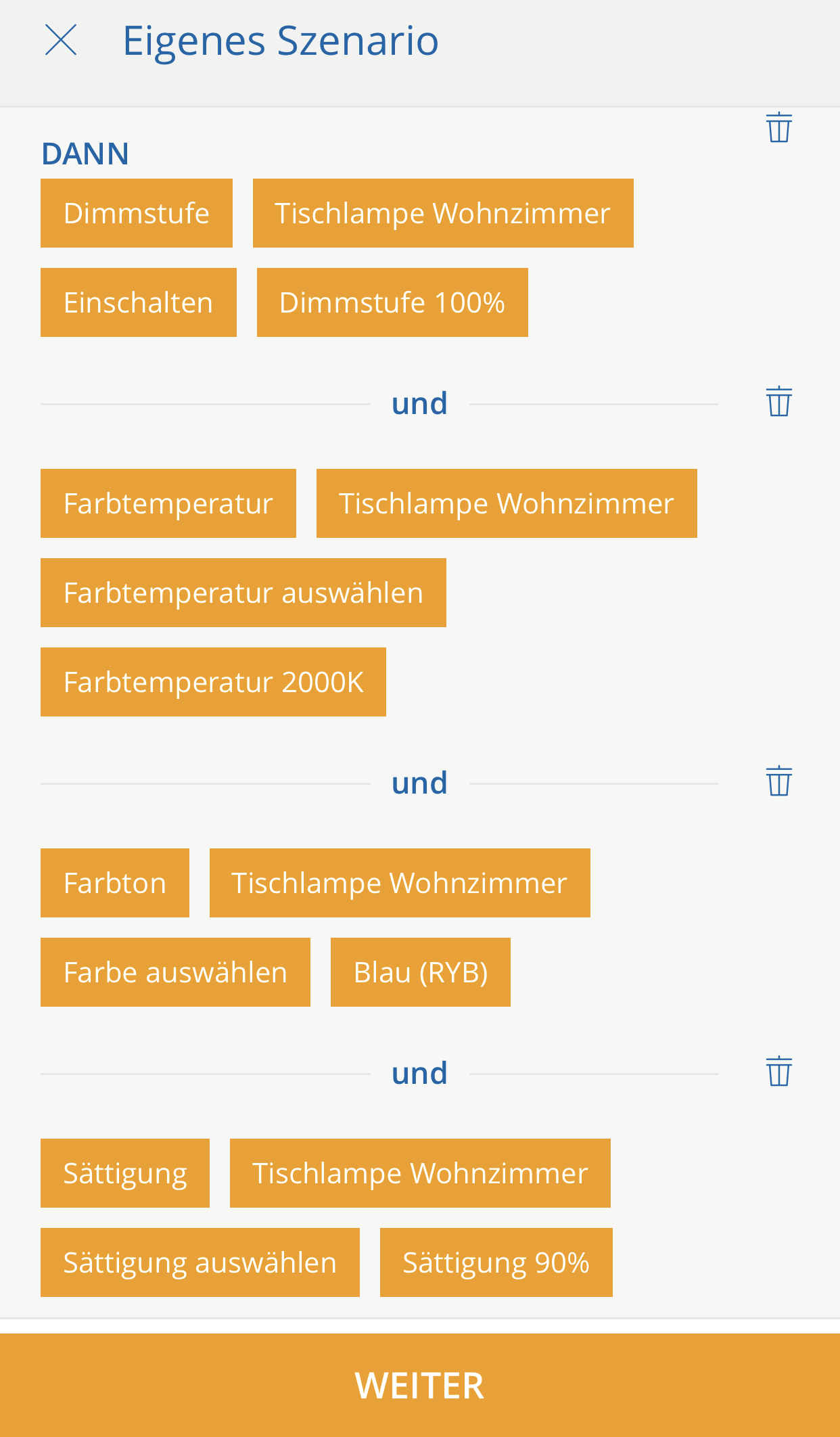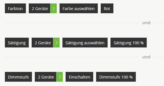 „Dimmstufe und Farbtemperatur oder Dimmstufe mit Farbe und Sättigung sollte angewendet werden, dann klappt es auch.“Mir ist das auch neu. Ist das irgendwo dokumentiert?...