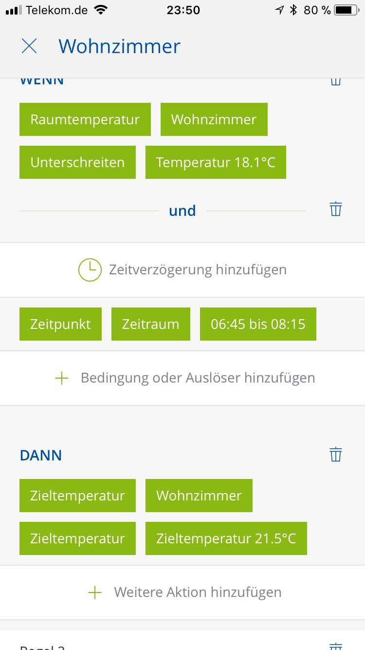 Hallo Besitze das System nun seid 4 Wochen und schaffe es nicht mit den Szenarien. Per Zeitschaltung versehe ich. Achja, es geht um Heizkörperthermostate und Fenster Sensoren. Folgendes, ich hätte gerne, dass die Heizkörper hoch oder runterregeln wenn sie die Raumtemperatur messen. Haben einen Kamin und wenn dieser an ist und die zeitschaltung aktiv ist drehen die HT hoch obwohl es ja schon warm ist.