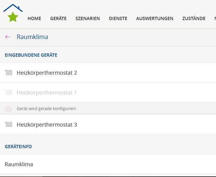 hi ist zwar ein altes thema aber habe das gleiche problem. bei den fensterkontakten hat es funktioniert indem ich die fenster ein paar mal geöffnet und geschlossen habe. wie funktioniert das aber bei bei den heizkörperthermostaten? ich habe eins im wohnzimmer bei dem die ganze zeit dran steht: gerät wird gerade konfiguriert