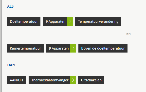Die Zieltemperatur kann dann aber jederzeit einfach wieder vergessen werden. In der Vergangenheit war dies kein Drama, aber da die zugrunde liegende Software der Szenarien angepasst wurde, wird dieser Wert wahrscheinlich als NULL angesehen und ein Szenario bei Zieltemperatur wird nicht mehr ausgeführt, wenn dieser Wert Teil der Programmierung ist. Das Ergebnis ist, dass die Heizung im ganzen Haus (12 Zimmer) den ganzen Tag eingeschaltet ist.