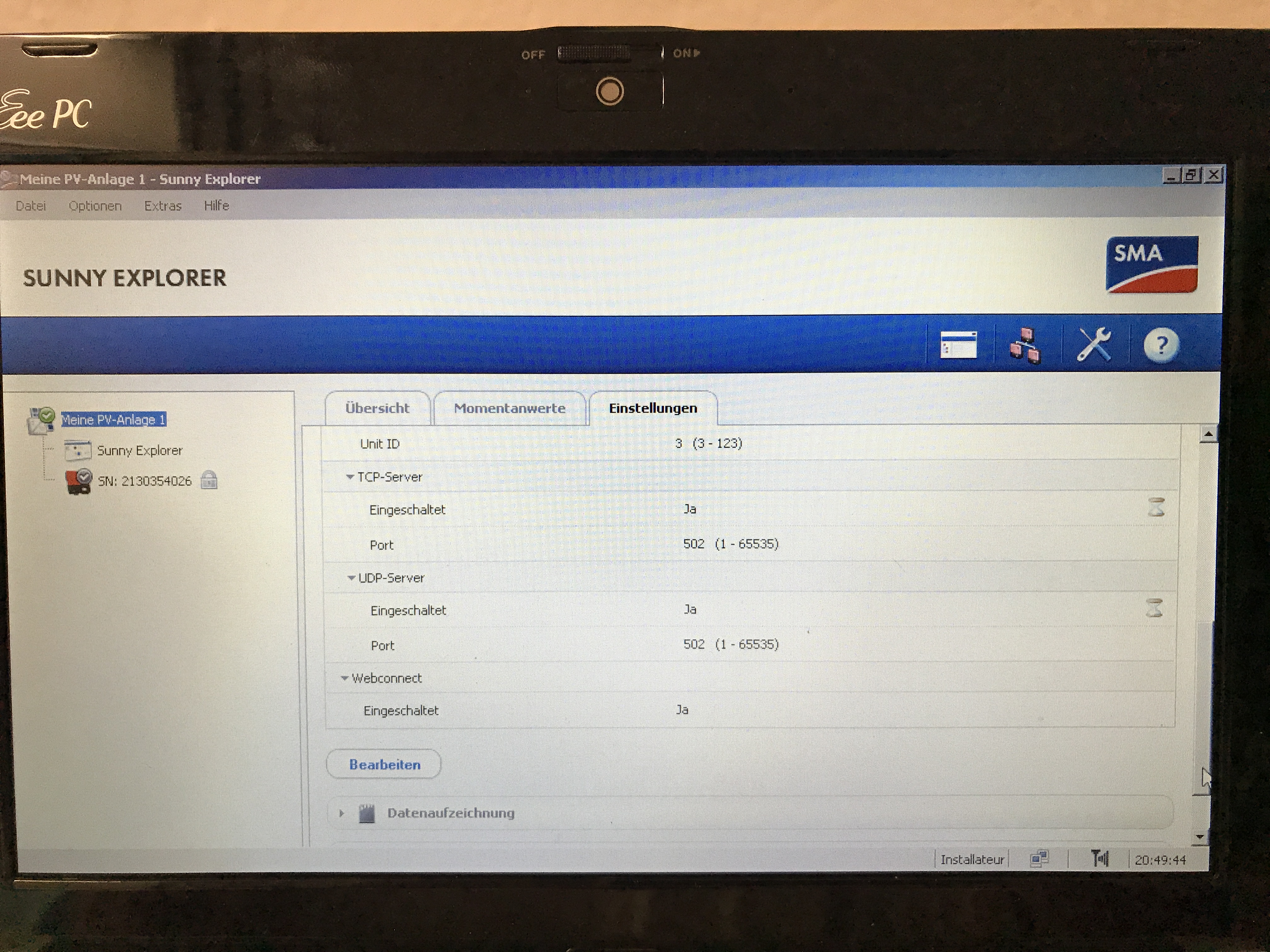Ich stehe irgendwie auf dem Schlauch. Habe eine Sunnyboy 3000 TL21 mit WebConnect über LAN. Verbunden. So finde ich Ihn nicht. Auch nicht nach Eingabe der IP Adresse. Was muss ich tun bzw. Wie kann ich den Rest aktivieren. Wo bekomme ich den entsprechenden Zugang her.