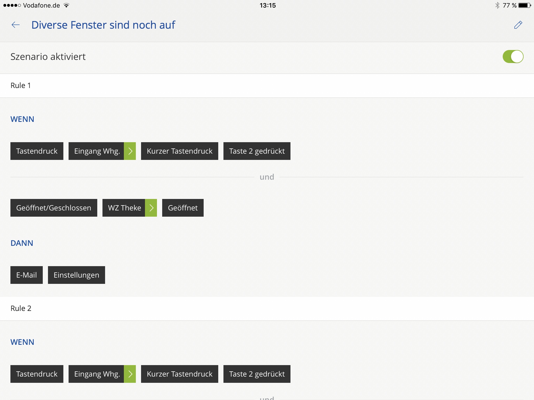 Wir haben 16 Fensterkontakte und wollen, wenn wir die Wohnung verlassen, eine Nachricht bekommen, wenn noch ein Fenster geöffnet ist. Hat jemand eine Idee, ich versuche es schon tagelang und bekomme das nicht hin.