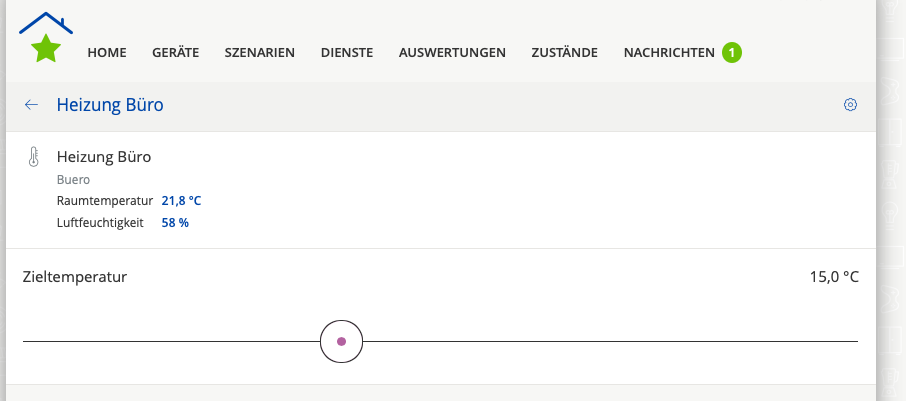 Wenn ein HKT in einer Szene ist und eine Ziel-Temperaturänderung durchgeführt wird, wird mir auf der Start- und Raumseite die Ziel-Temperatur angezeigt. Wenn ich jedoch am physischen HKT direkt die Zieltemperatur ändere, wird diese nicht auf der Startseite und nicht auf der Raumseite, sondern nur in den Gerätedetails angezeigt.
