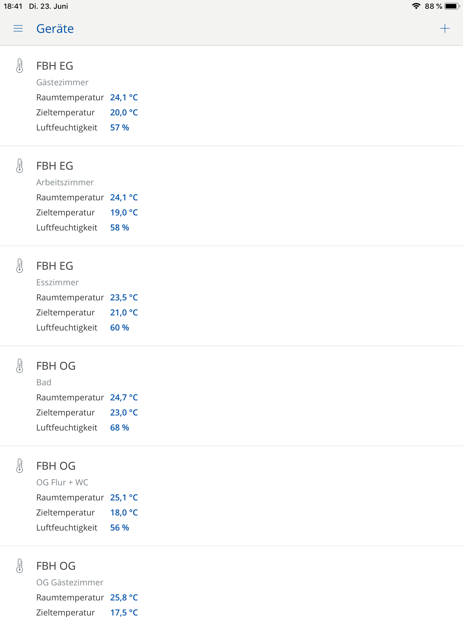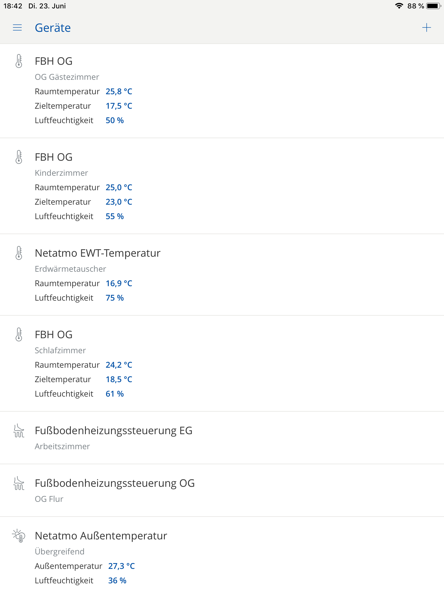 Ich wollte die Anzeige mit Raumtemperatur „fest“ ohne die Wechsel mit den anderen Werten. Habe ich so in allen Räumen. Da alte FW unter IOS nicht möglich, leider aber auch nicht über Browser unter dem Link, den ich schon für die Einbindung Heizkreis genutzt hatte. Habe unter „Geräte“ alles abgesucht…