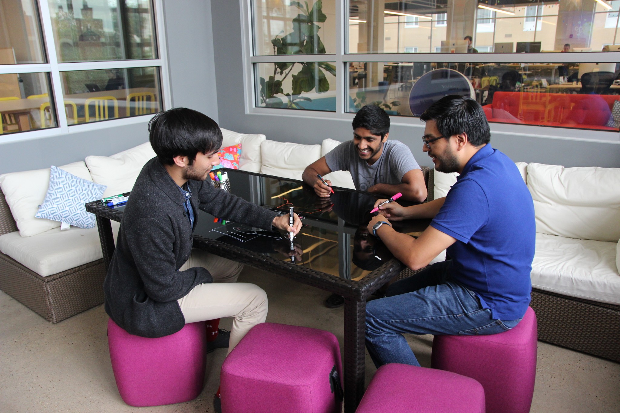 A neon sign at Duolingo headquarters reading