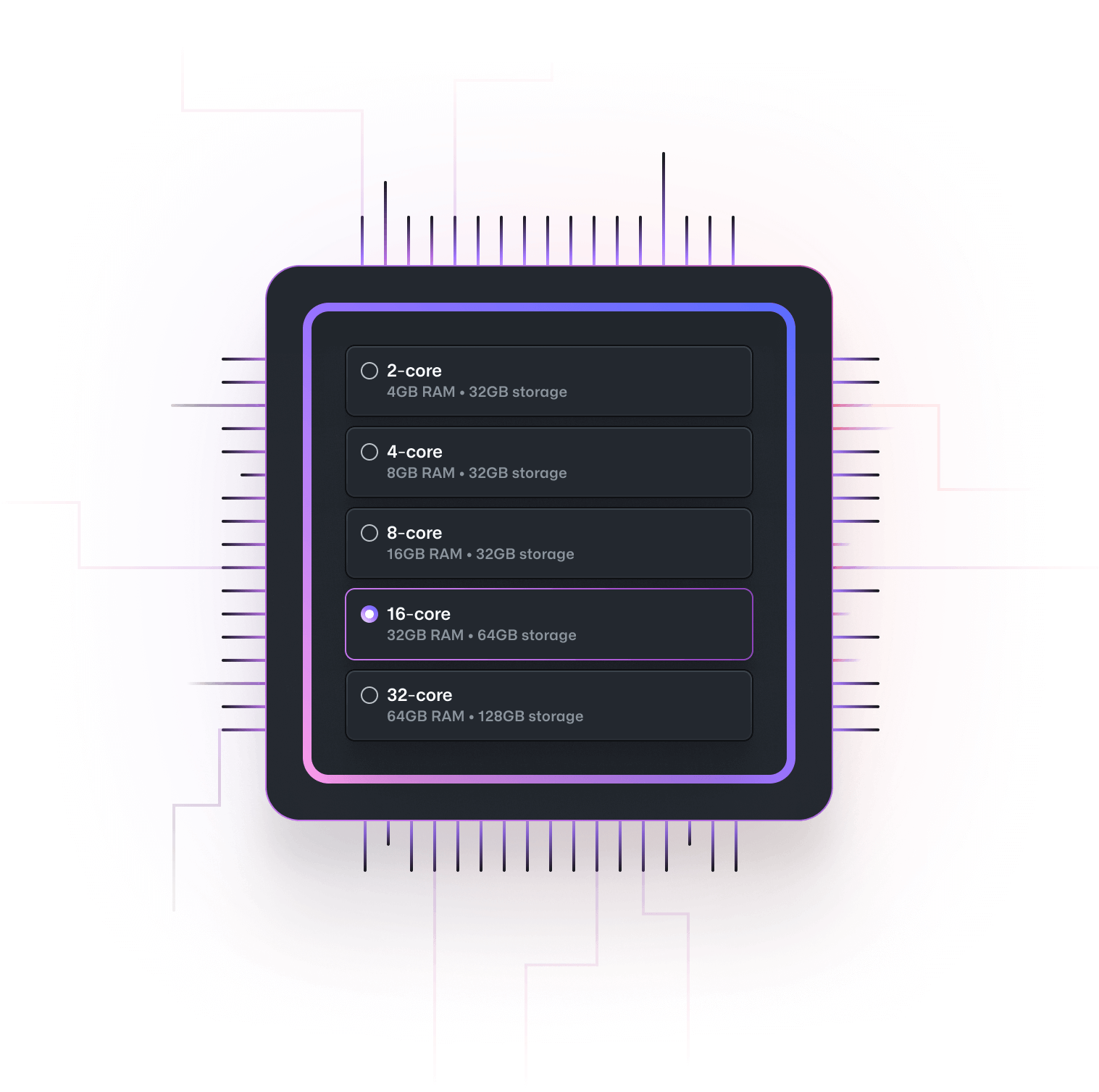 GitHub Codespaces run on a variety of VM-based compute options hosted by GitHub.com, which you can configure from 2 core machines up to 32 core machines. You can connect to your codespaces from the browser or locally using an IDE like Visual Studio Code or IntelliJ.