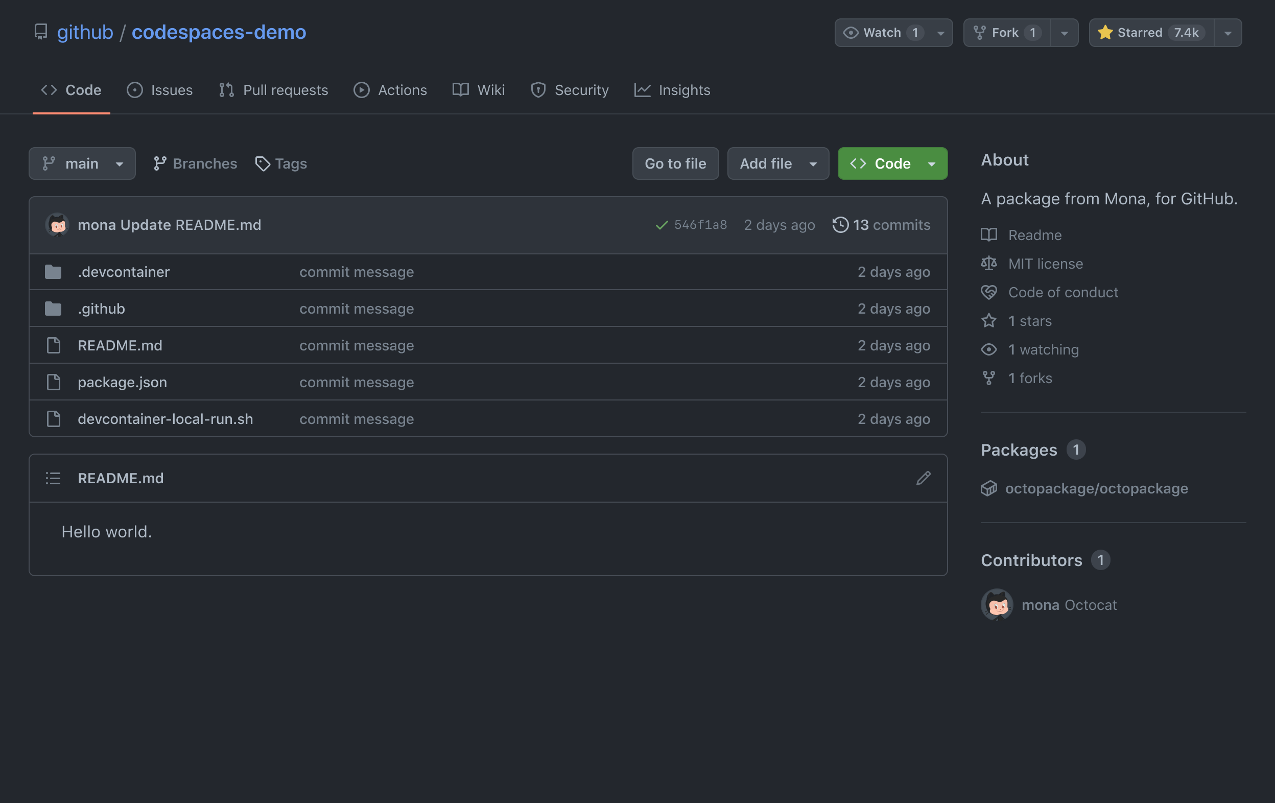 A codespace is a development environment that's hosted in the cloud. You can customize your project for GitHub Codespaces by configuring dev container files to your repository (often known as Configuration-as-Code), which creates a repeatable codespace configuration for all users of your project.