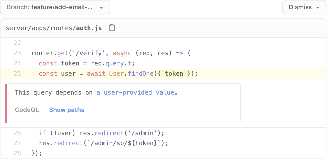 CodeQL is a revolutionary semantic code engine that queries your code as data. Find security issues deep in your code. CodeQL’s powerful analysis can trace data flows through your application to identify vulnerabilities like SQL injection and remote code execution.